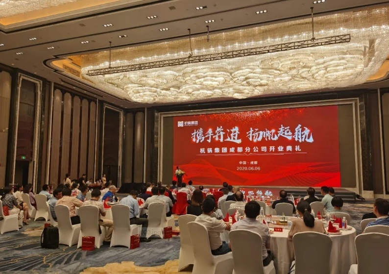 2020年6月6日,杭锅集团成都分公司、成都设计研究院开业典礼在成都万达瑞华酒店隆重举行。西子联合总工程师颜飞龙、杭锅集团总经理何伟校、杭锅集团常务副总经理侯晓东、杭锅集团成都分公司总经理沈和平等领导出席本次庆典。西安交通大学惠世恩教授、四川大学肖先勇院长、重庆大学廖强院长、戴尔科技集团全球副总裁张耀华先生、中国机械设备工程股份有限公司事业部总经理曹庆先生等多位嘉宾受邀参与庆典。
